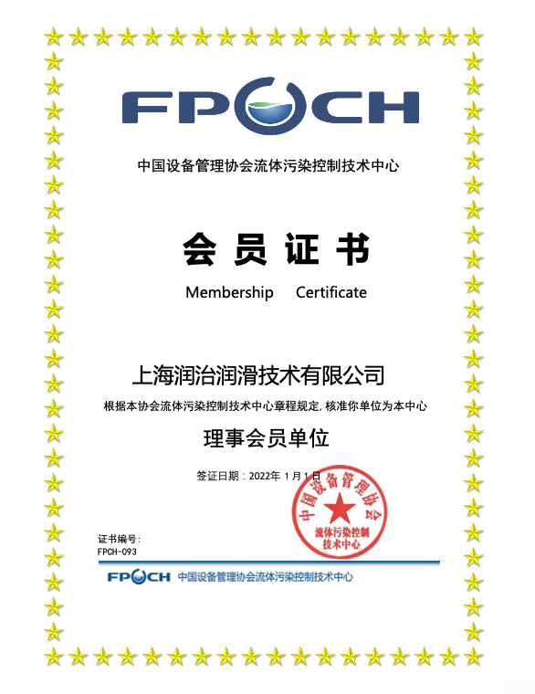 2022年1月,深夜视频在线公司旗下全资子公司上海润治润滑技术有限公司(以下简称:上海润治)正式成为中国设备管理协会流体污染控制技术中心理事会成员单位。